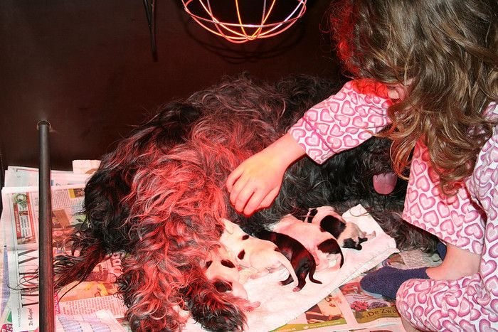 De rode warmtelamp geeft dit rode licht op de foto!